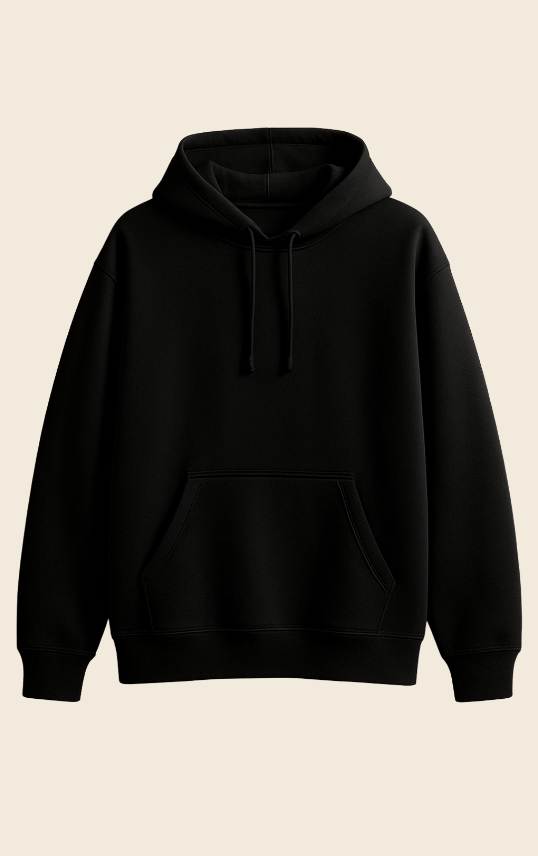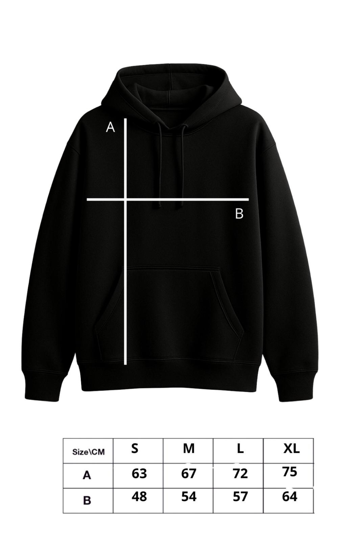 Modello oversize con cappuccio e tasca a marsupio frontale.